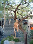 Greyhaunt Manor 2004 - Bob, the CorpseBob was made by Mik Wilkens, haunt founder and webmistress, using a blucky skeleton. The funky blucky skull was replaced with a more realistic plastic skull, and then the whole thing was corpsed using the glue-and-paper-towel method and given its nice brown color with watered-down wood stain. Great Stuff painted with acrylic paint formed Bob's guts, and additional acrylic paint was added for details and highlights. |