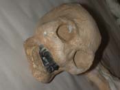 Greyhaunt Manor 2004 - HeadsThree heads made by Mik Wilkens, haunt founder and webmistress, were used for decoration. Two were made from blank white masks used to make decorative masks; the third was made from the blucky head removed from Bob, the corpse. The heads were corpsed using the glue-and-paper-towel method. Details were added using acrylic paint and store-bought eyeballs. |